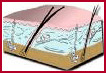 La epidermis.- Está formada por los queratinocitos, células que van madurando progresivamente hasta morir, momento en el que se desprenden como escamas. En la capa más externa de los queratinocitos y en los espacios libres entre unos y otros existen determinadas grasas que cumplen varias funciones.